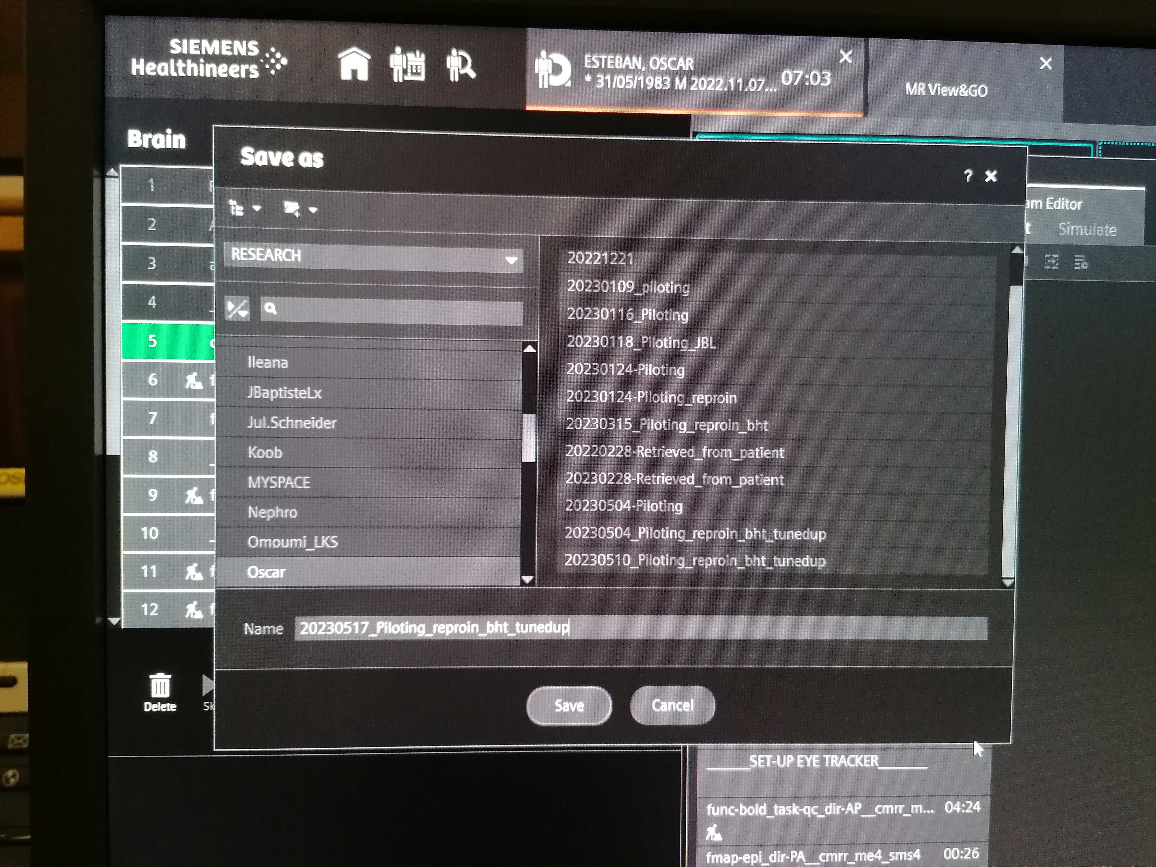 - Select the right protocol under RESEARCH โคท Oscar.